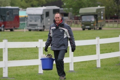 The world's most over qualified bucket carrier? Blyth helping me at Aston le Walls (photo: Uptown Eventing) |