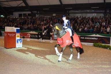 At the latest Western European League World Cup leg in Neumunster, Germany, Equestrian Victoria’s guest at its upcoming PSI Dressage & Jumping with the Stars, Helen Langehanenberg and her impressive stallion Damon Hill NRW notched up another stunning victory.