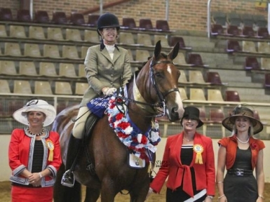 2012 Champion Large Show Hunter Hack- Revelwood Jukebox (Deborah Bardell) with judges Penny Sinnamon (NSW), Amanda Edwards (QLD) and Brooke Stevenson (NSW)