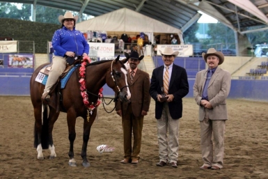 Excitement was building about Sam’s future. A month later was Q4 where Sam took the title of 3yo CHAMPION STALLION at halter. Then the title of Junior Western Pleasure Champion was Sam’s, out of a top class field of 24.
