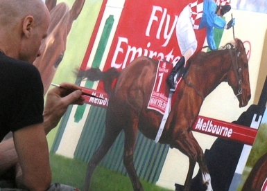 In addition to the Makybe Diva Portrait, the winning bidder will also receive a commission painting of their own choice by the same artist and of the same standard. Michael Legge-Wilkinson (pictured below - painting the Makybe Diva portrait) has been a full time artist since March 2000 and focuses exclusively on major works and commissions.