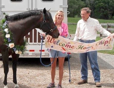"He left our home when he was two years-old," says, proud owner, Ann Myers. "After enjoying a wonderful life with Cleve Wells, Bob and Ann Perry and most of all Joe and Suzy Jeane for the past 26 years, Chip has retired to his birthplace. We are excited for him to be here. He has been our magical horse."