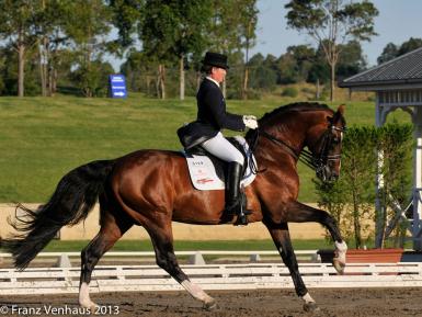 Sheridyn Ashwood on Prestige VDL, the winner of the Grand Prix Tour at the 2013 Sydney CDI (photo credit Franz Venhaus) |
