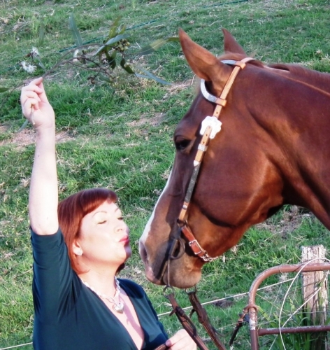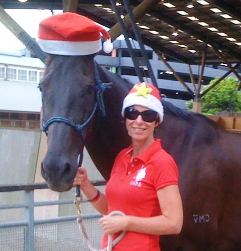 | Haylie and race horse West End (Snoop to his mates) who she owns with friends, steal a moment under a sprig of Pohutakawa - sometimes called the 'NZ Christmas tree' - the NZ version of mistletoe! |