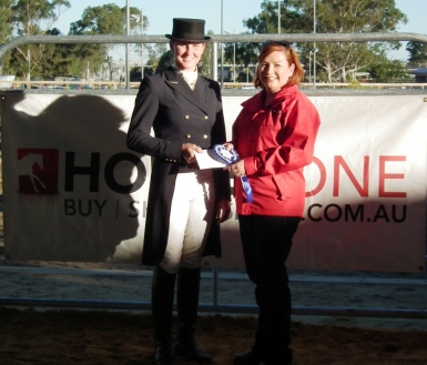 Victoria with Horsezone's Jo Johnson after winning the Advanced 5B at the Great South Eastern Dressage Championships, which was sponsored by Horsezone |