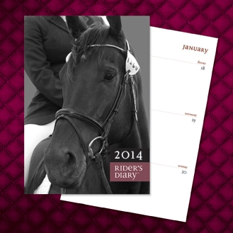 The Rider's Diary is a horse log book to keep track of riding lessons, horses heath and competition results. The Diary is available in a Binder version (perpetual diary) and 2014 dated diaries.