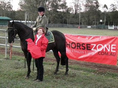 Despite all the wonderful attitudes shown by the Youth, there could only be the two winners and the jacket for junior youth went to a thrilled Madison Bryans riding Collinspark Steve. Madison shares Steve with her dad John Bryans - this horse truly typifies the easy going nature and versatility of the Australian Stock Horse. Winner of the jacket for senior youth was the very deserving 16 year old Tayla Hill, riding Syliva Vale Platoon, who was also excited to become the proud owner of a Horsezone jacket. Stay tuned to future newsletters where we'll be doing a Rising Stars feature on Tayla.