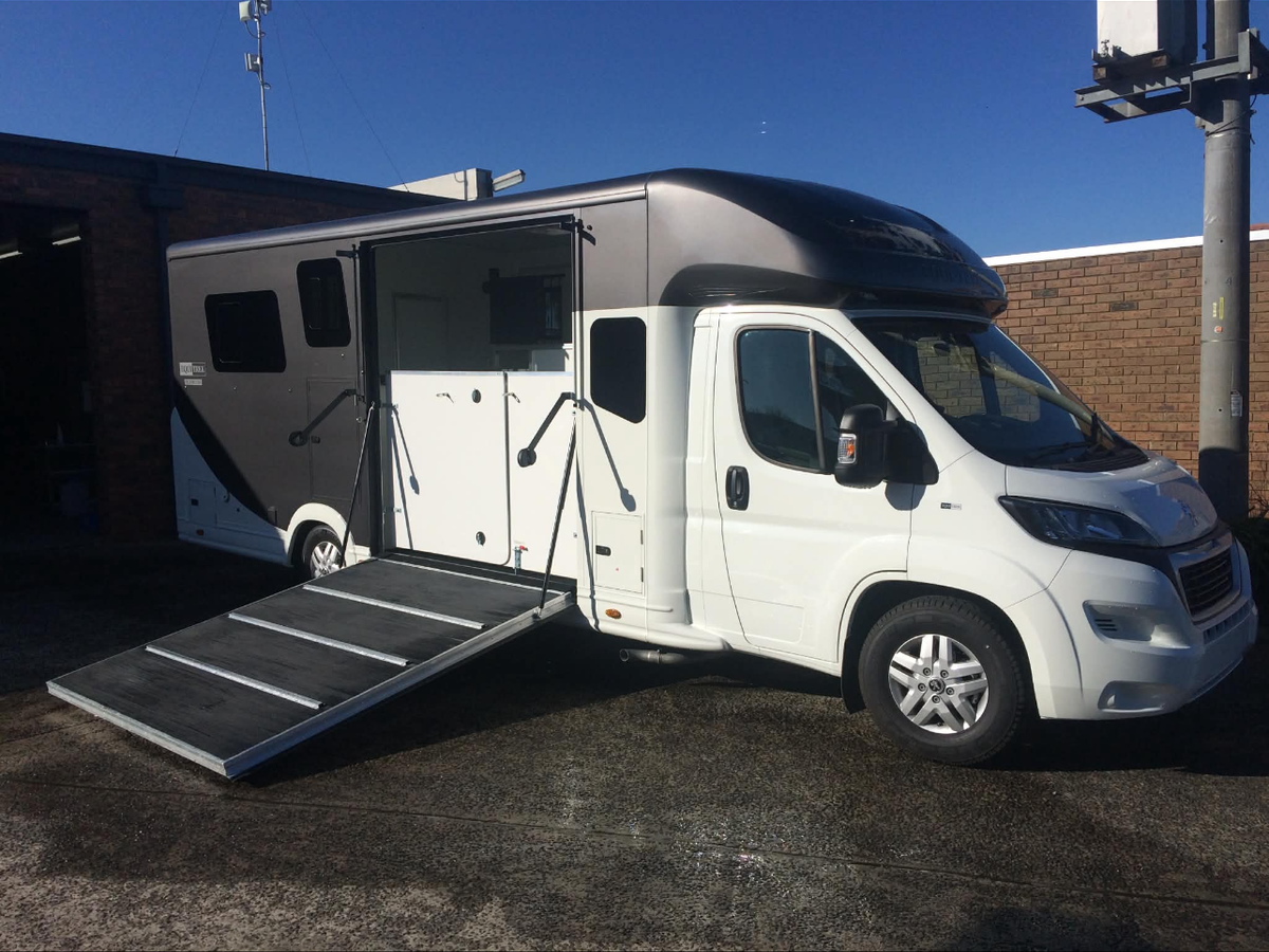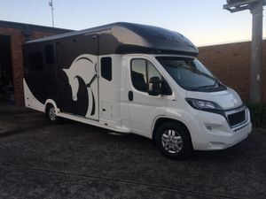 2020 Equitrek Victory 5 24,000km Turbo Diesel Manual 2 horse truck with living, shower, gas hot water, 2 X bunk beds, microwave, ducted heating,, fridge, sink, great storage inside and 2 X large rack boxes. Baby anchor point in cab has been installed as well as after market padding in horse bays and PVC curtain for the outside where horses tie up. Tow ball installed can tow a float. As new condition and well below new cost and 6 month lead time reddy to go now.