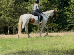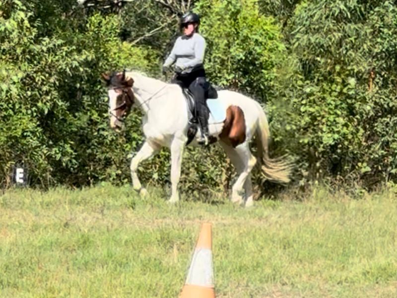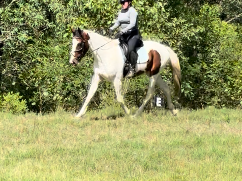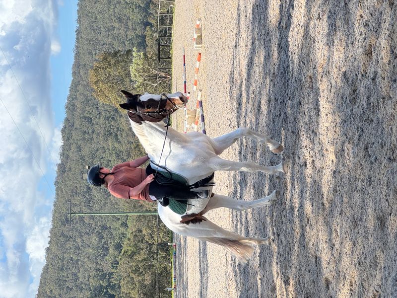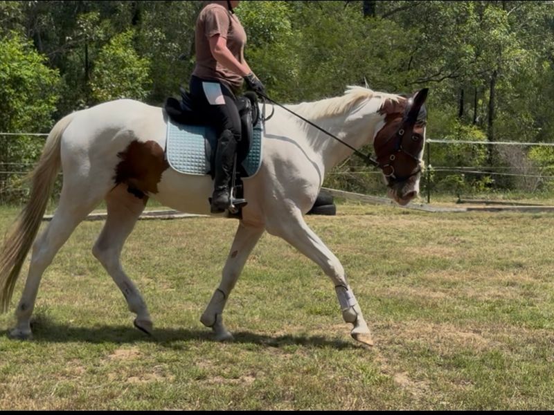 He is going well under saddle and is willing to learn and very kind. He has lovely expressive big paces, currently has had limited outings. He will start his competition career in 2026.