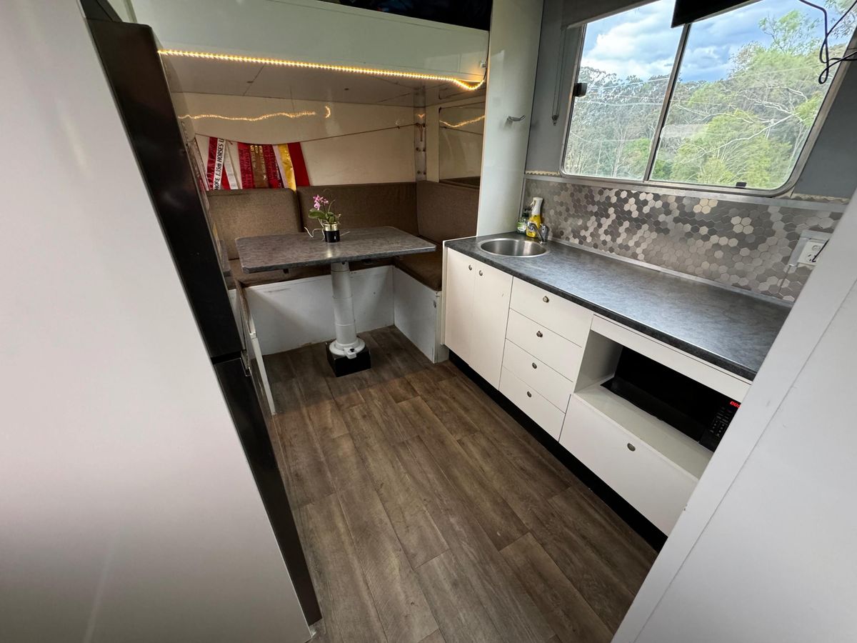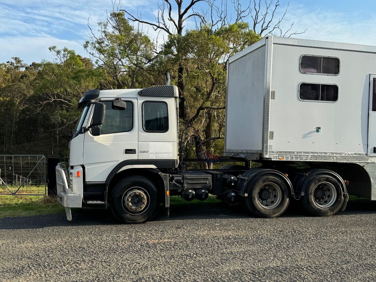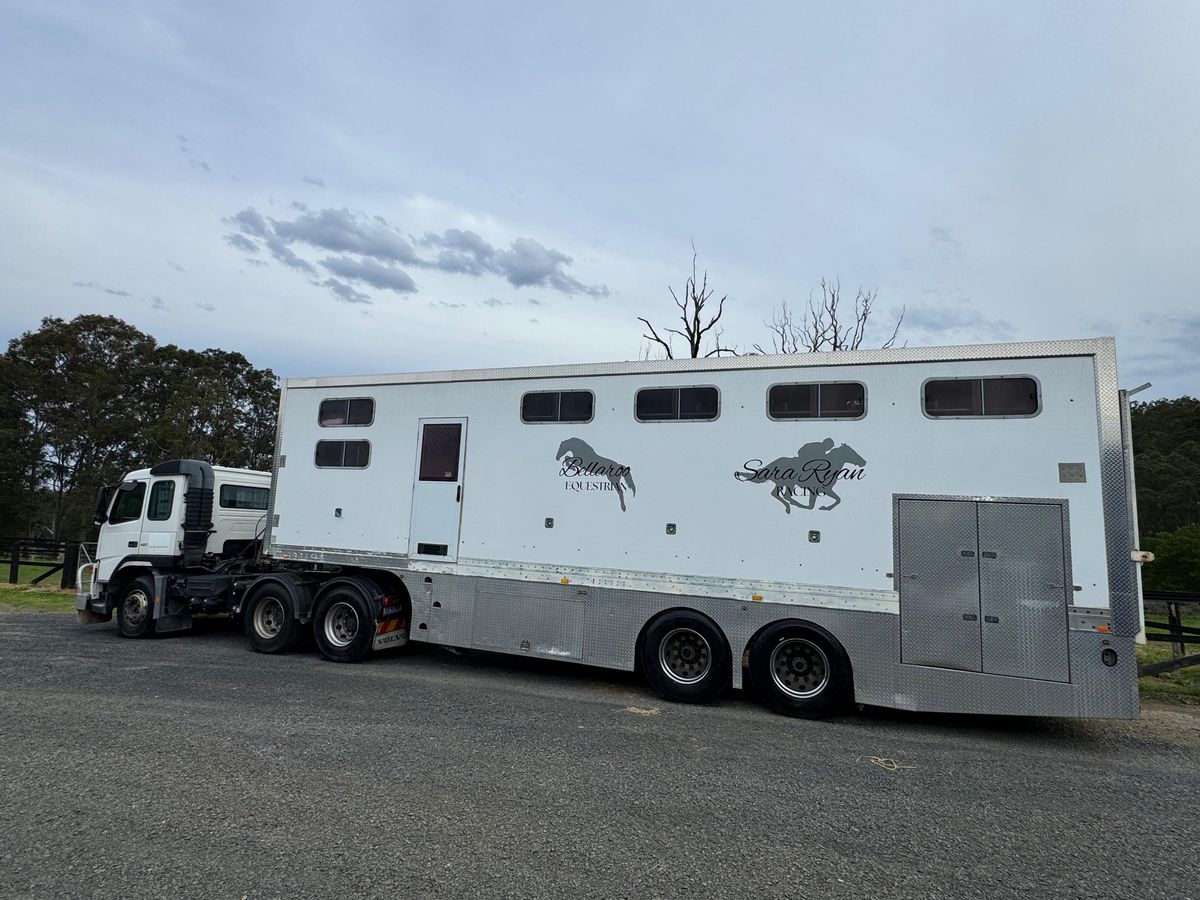 • Trailer is on airbags which raise and lower, very smooth ride which means the horses travel really well.