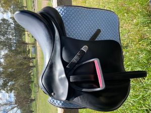 Bates AP saddle, 17.5inch in black. Is flocked, not cair. Not sure on gullet size but is changeable.