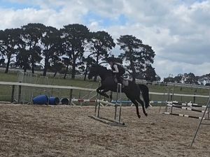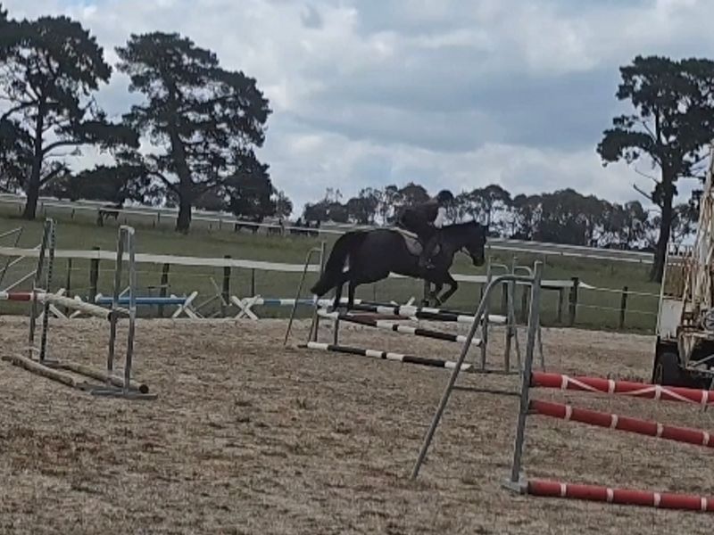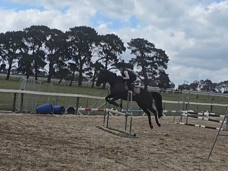 Tommy is a soft, easy ride who sits a little on the lazier side. He keeps a rhythm naturally and is simple to jump, point and go. He is schooling 80cm XC and 90 cm showjumping with ease, showing scope and willingness to progress further.