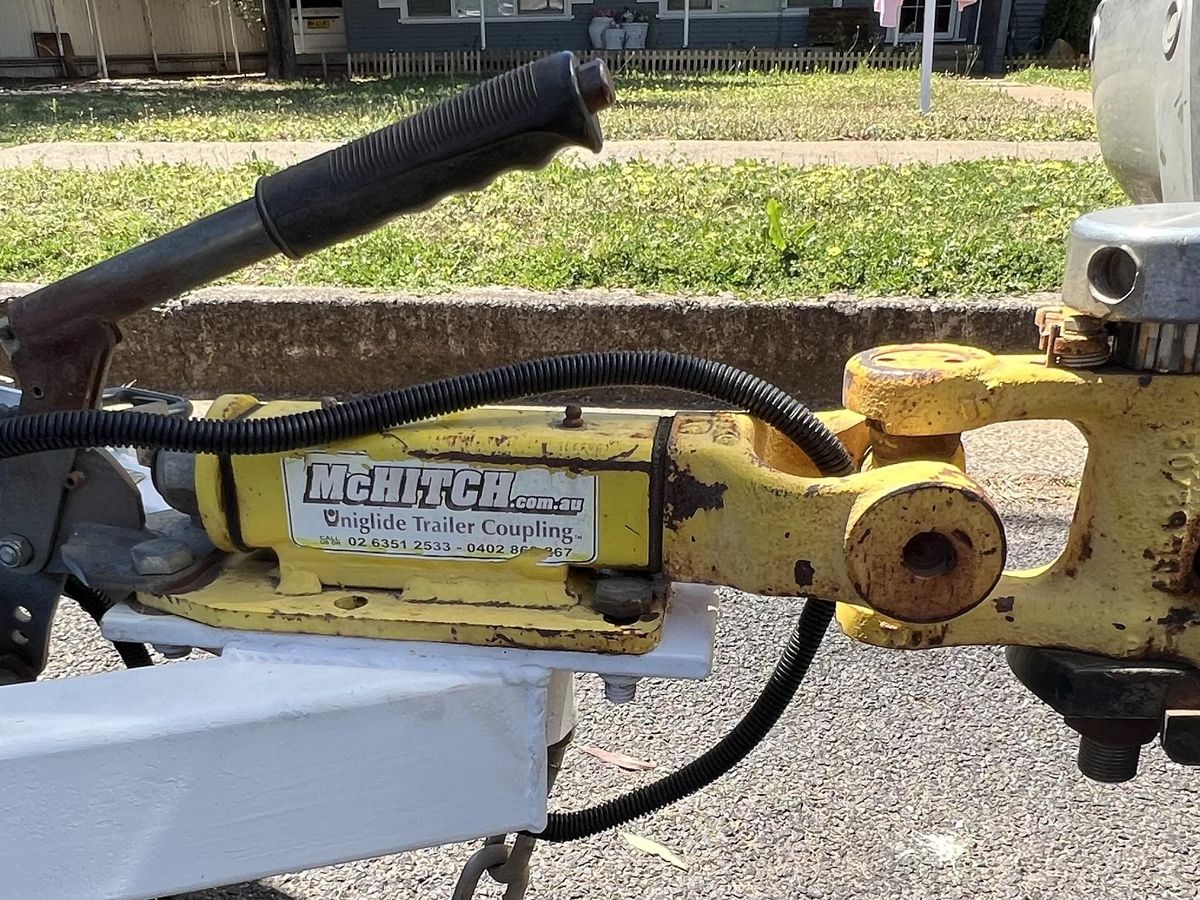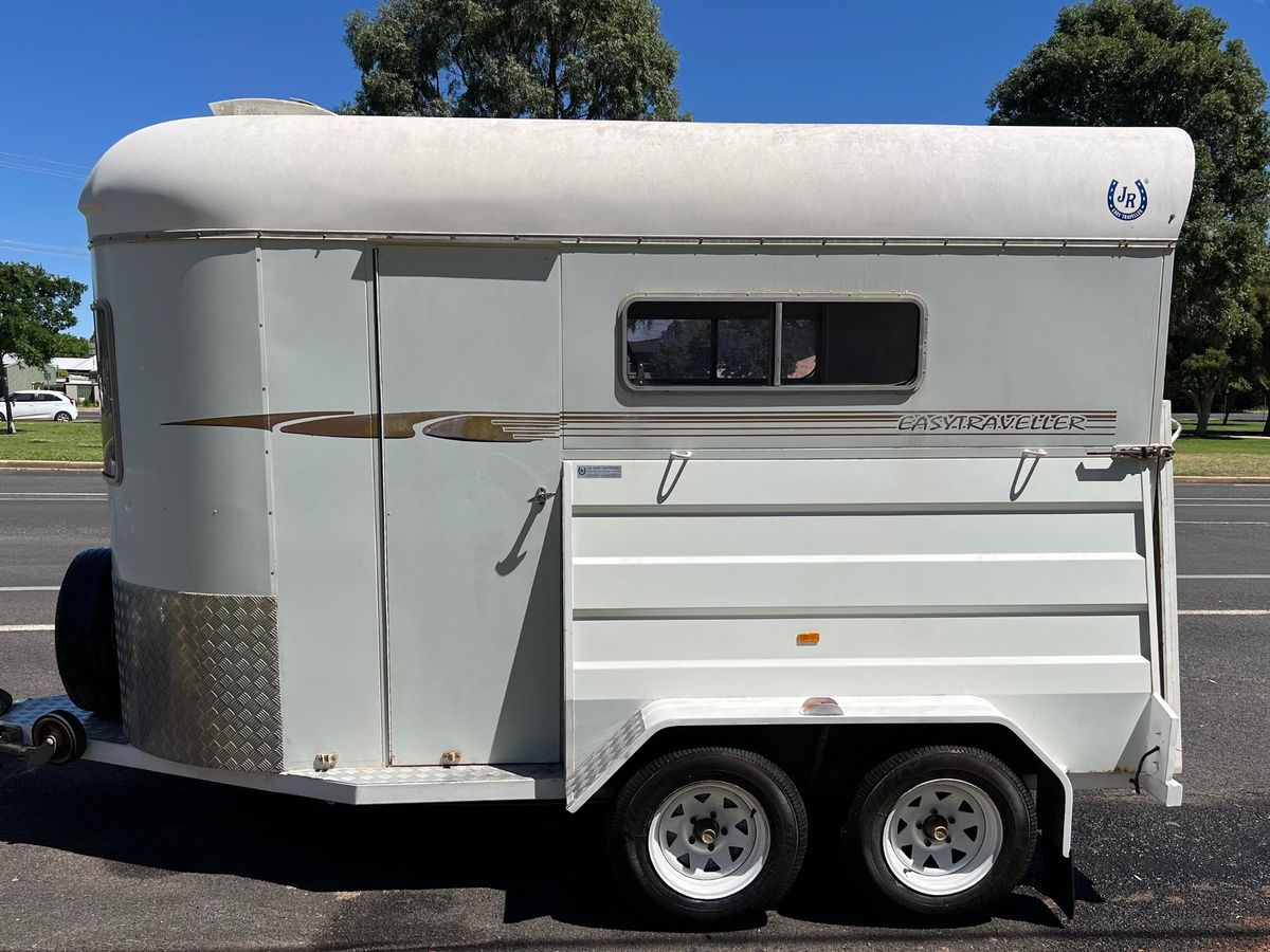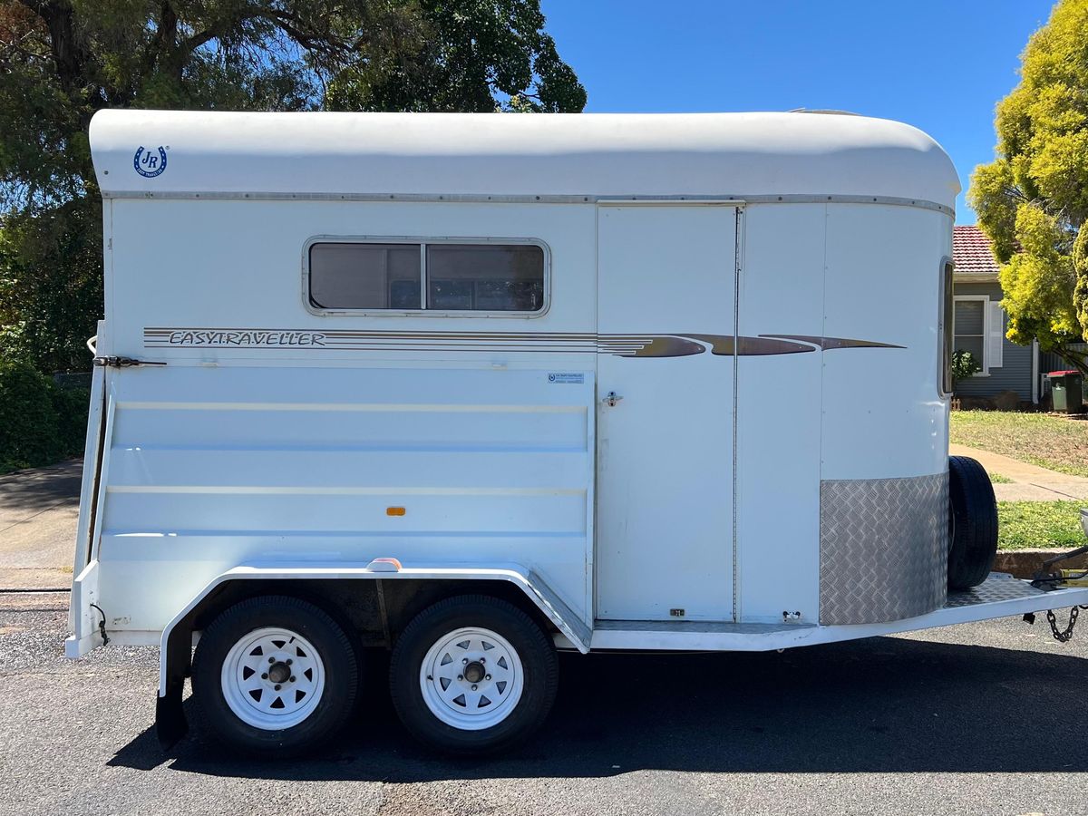 In great condition, new spring loaded tail gate 12 months ago, front floor section replaced 6 months ago. Just had the all the exterior lights re done last month, electric brakes, fold up jockey wheel, Mchitch drop on towing system (pin included), removable stallion head divider, adjustable horse dividers both front and back and has two front doors for easy access. This float has carried two 17hh horses easily. It is a fantastic float to tow and only selling due to upgrade.