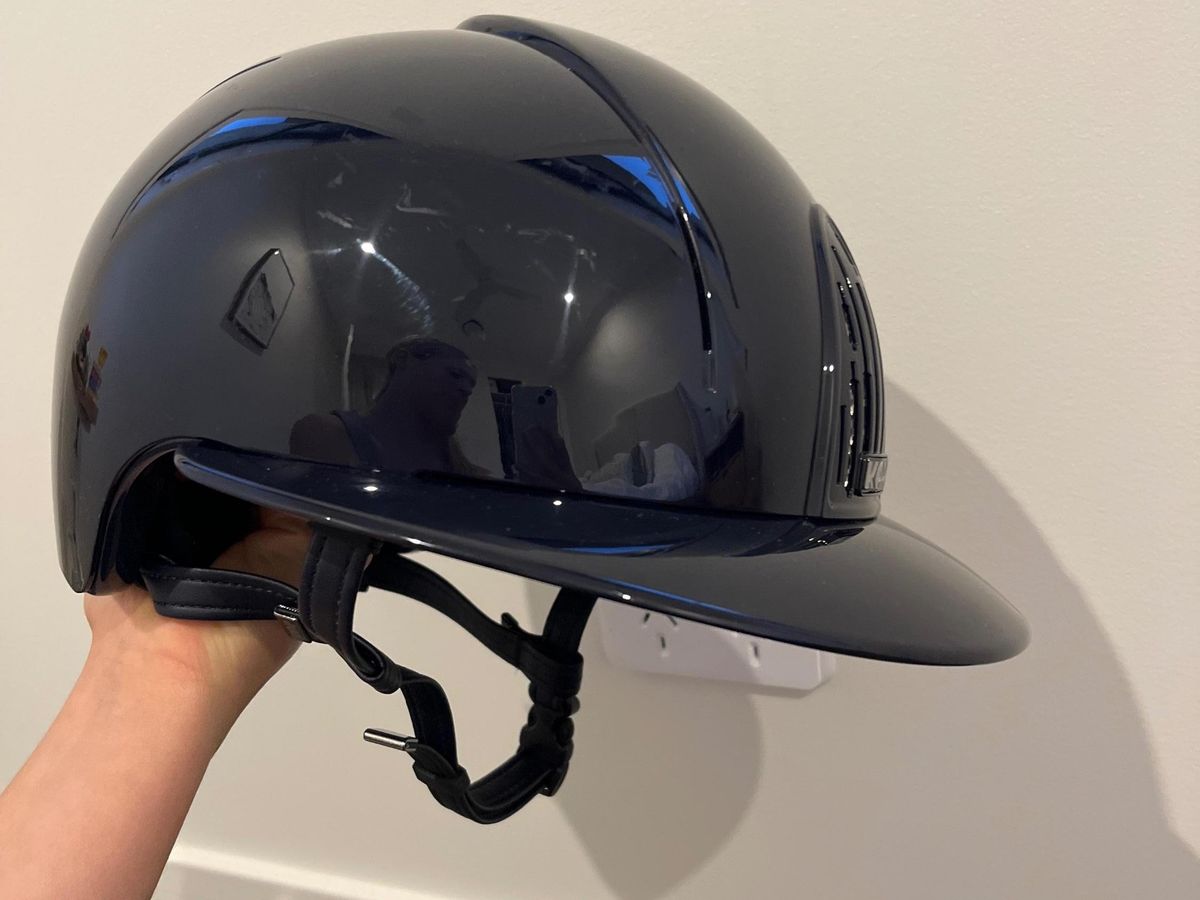 Kep smart in gloss navy, size 57. Bought new earlier this year and has had less than 10 rides, washable liner and changeable for the right size. EA QLD tagged and has never had any falls. Some small scratches but not noticeable, hence neg price.