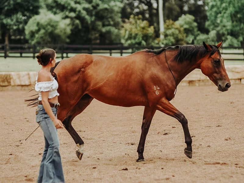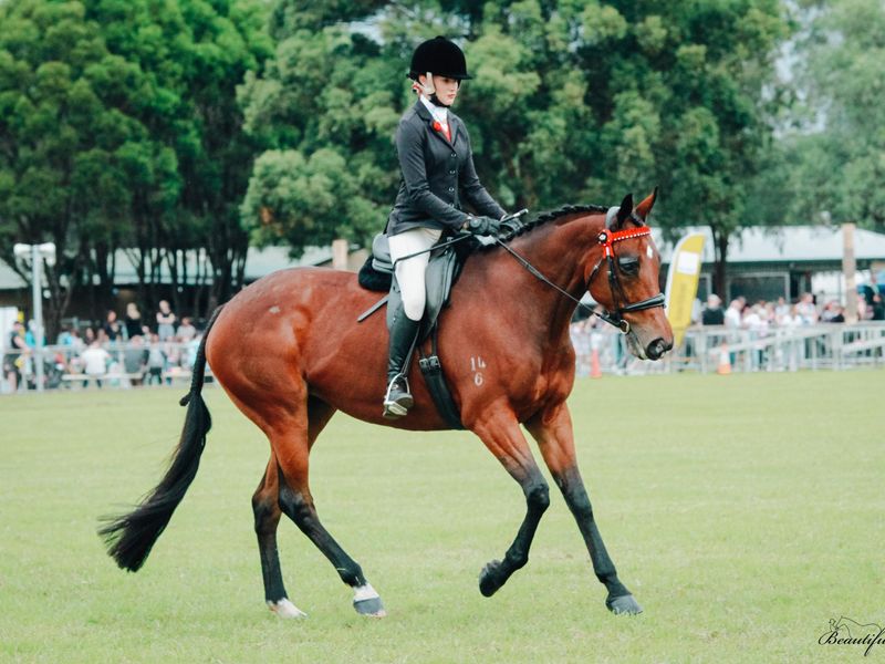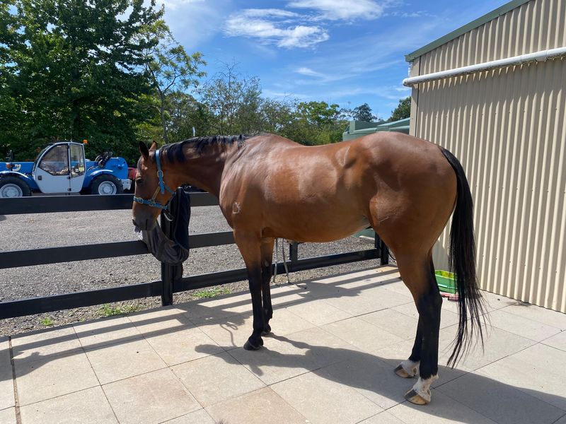 She has been trained to do some liberty work and absolutely loves it, lunging off voice command. She has outstanding conformation with clean legs making her a successful show horse. Whilst she has previously been evented to 80cm, she is more suited to a dressage, show, or pleasure home. She is super brave, loves water, and is great out on trail rides. Super flashy movement and a floaty trot that will score her 10s for her extensions.