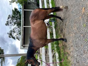 While he has been with me, he shown nothing but kindness, easy to handle in every way , he is willing and picks things up quickly, good clean legs , extremely athletic type , I believe he would excel in any discipline you choose, he holds himself beautifully on the flat.