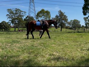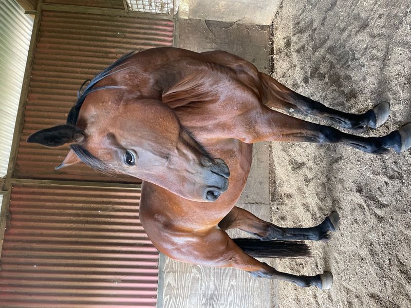 Patrick was professionally saddle-broken by a trainer in 2020. After this, he was purchased in 2021 as a beginner horse for a 10-year-old child; however, he was subsequently ridden by inexperienced adults, which resulted in him losing some confidence—particularly around men. His previous home was not horse-experienced and was unable to provide the level of care and handling he required, so I took him on in 2023 to improve his health and wellbeing.