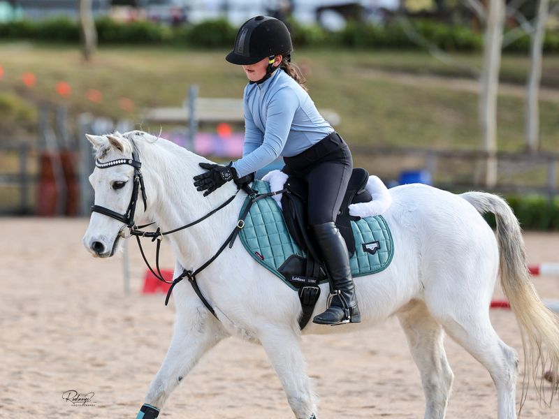 Meet Sunny Ridge Stormy, a stunning and reliable performance pony who has spent his career helping young riders shine in the showjumping arena. Stormy is a true aim-and-shoot pony – point him at the fence and he’ll take care of the rest. He confidently jumps up to 1m and has the scope to take an ambitious rider even further. Beautiful boy that is responsive to leg aids and gentle hands.