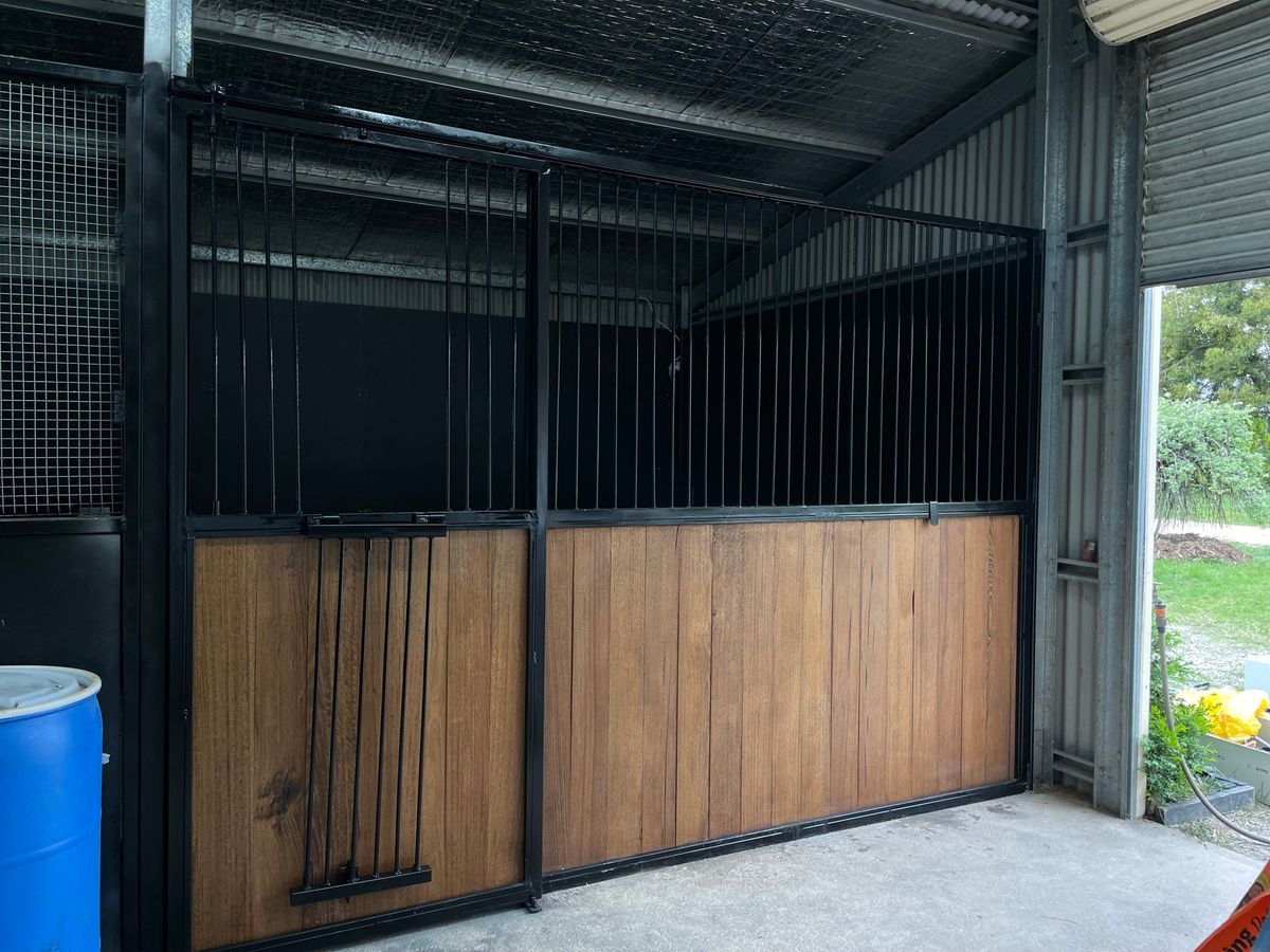 We build high-quality, fully custom stable fronts using durable materials designed to last — including 19mm formply, Tasmanian oak options, 12mm round bar, and galvanised steel frames. All panels feature smooth edges, secure spring latches, Sliding doors and practical designs for everyday use.