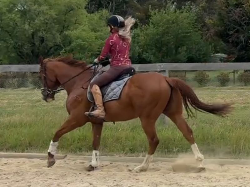 His temperament is an absolute highlight with this fellow, I can not fault him, I love him dearly. He travels beautifully, he is not a spooky type and is fantastic on trails, around cars, dogs, kangaroos - no problem. A real fun horse.