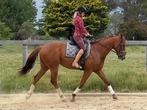 I am very particular which TB’s I take on after racing, temperament is everything and I love big movement, he’s got both. I have a string of very successful dressage and eventing horses, but I take on wonderful OTTs to give these horses EVERY opportunity to have a life after racing, I do it for them - their next home is very important to me and requires confidence & commitment. If you think Bowser might suit you, come and view him here in Orange NSW - I can get footage over the weekend - or we are entered in a Dressage comp in Young NSW this weekend, come see him there.