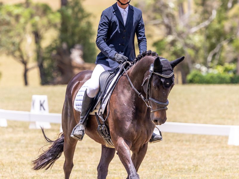 Under saddle, Harry is established, reliable and very enjoyable to ride. He has three quality paces and consistently receives positive comments from dressage judges. He demonstrates very good self-carriage and balance, boasting expression and class in his movement. His naturally uphill canter, expressive trot, and adjustable way of going allow him to deliver the same quality feel consistently.