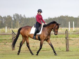 A stunning 9-year-old mare standing at approximately 17hh. Sired by Dusky Style and out of a mare by Lets Jazzabit (Grand Prix dressage), Charlotte carries an impressive pedigree that speaks volumes about her potential.
