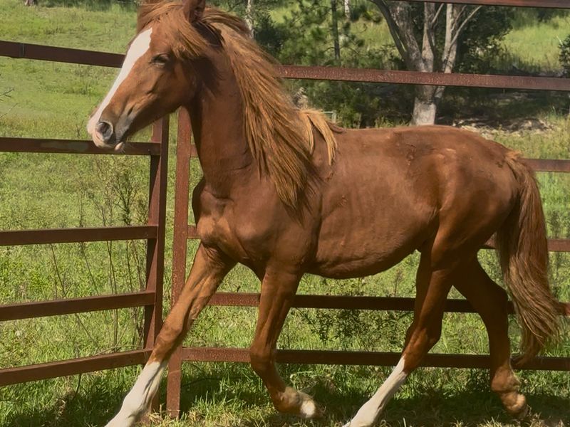 RegistrationsLady is a striking chestnut filly (born 2023). She’s a Stockhorse x Purebred Welsh cob. Dam 15.2hh, Sire 14.2hh.