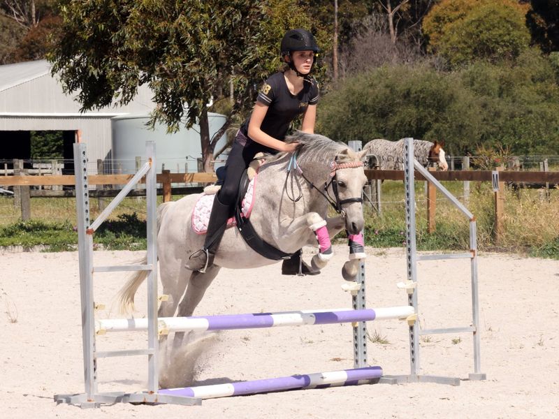 Link is a beautiful Riding Pony x Welsh who has been an incredible first pony for us. He’s good to catch, wash, trim (barefoot), float, lunge, tie up and handle, and he is up to date with the farrier, dentist and worming.