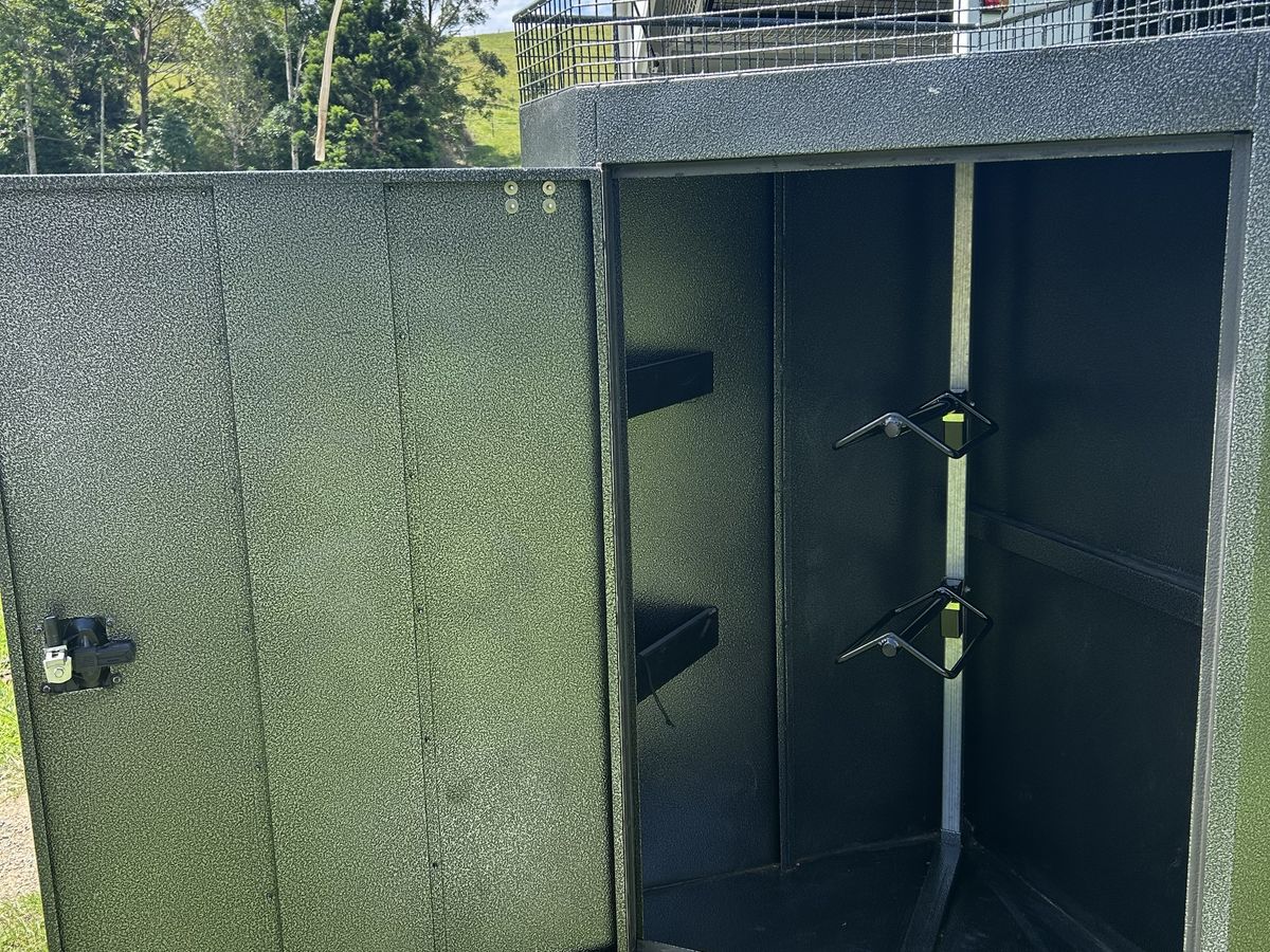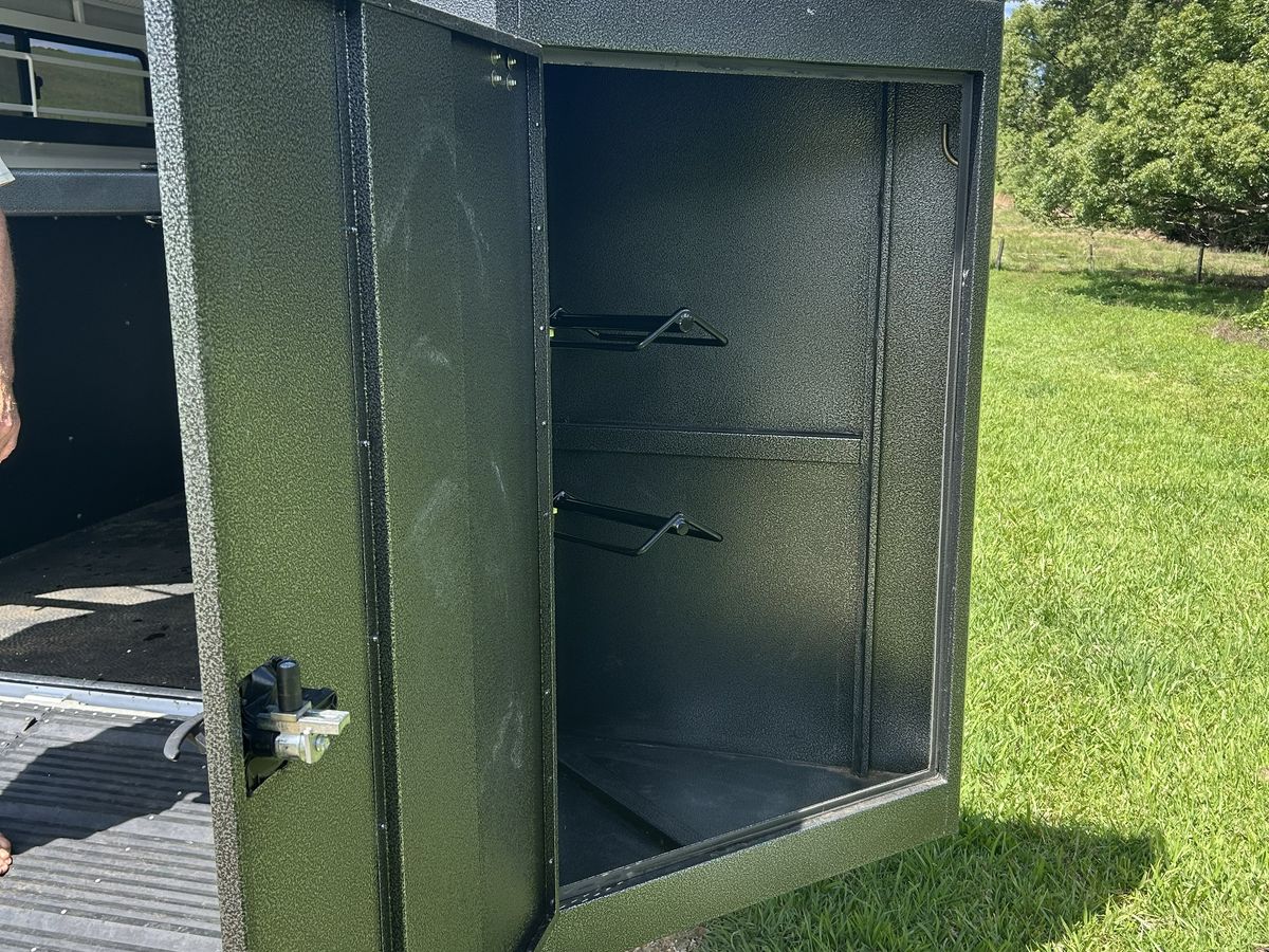 路 Fold out lockable tack box which can be left outside with tailgate up